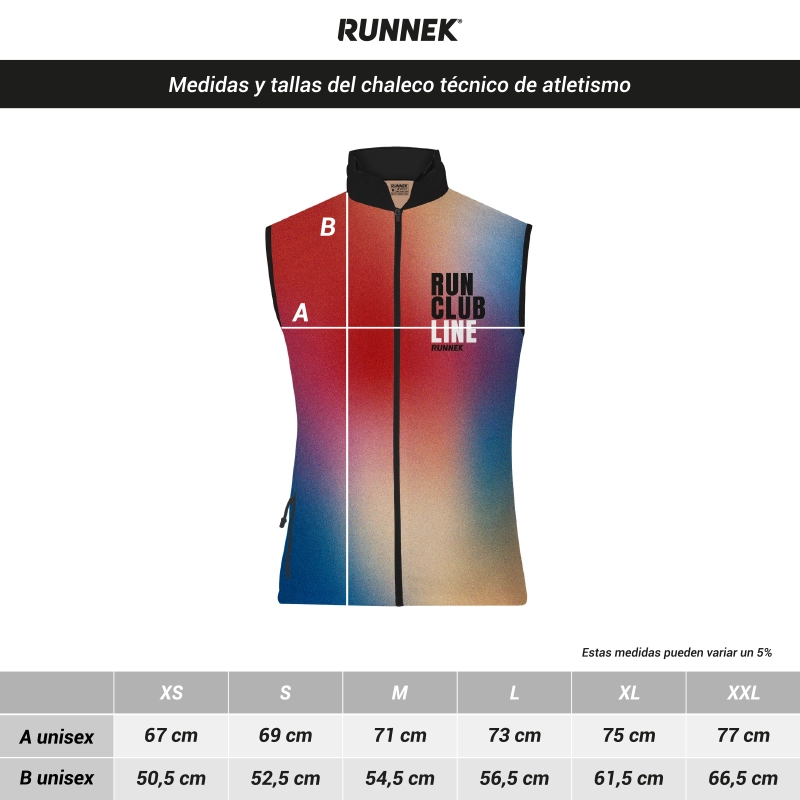 ¡Tu equipo de running siempre a la moda! Compite las inclemencias como el viento y el frío mientras alcanzas tus metas con el chaleco técnico 100% personalizado por sublimación con el branding de tu club de atletismo.