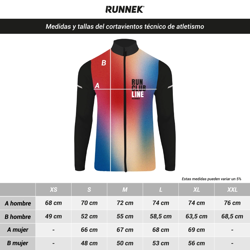 ¡El mejor complemento para hacer frente al invierno! Nuestro cortavientos técnico es muy valorado por nuestros atletas y ahora puedes personalizarlo 100% con el diseño de tu club de atletismo o running.