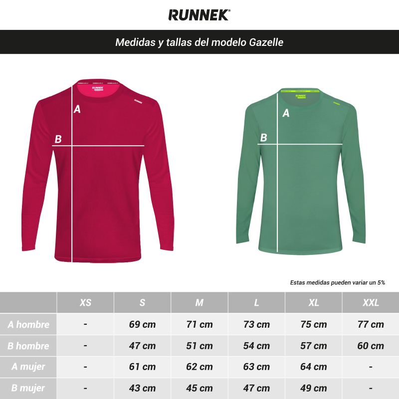 Gracias a la tecnología de vanguardia en transpiración, Runnek Gazelle dispone de microceldas que se encargan de absorber la humedad para evaporar el sudor y que te mantengas seco durante tu actividad deportiva.