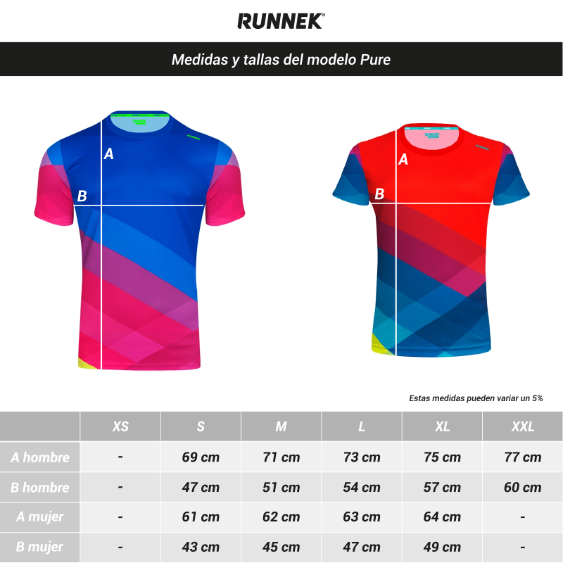 ¡Atrevida como tú! La camiseta de manga corta Runnek Pure ha sido diseñada por completo con tecnología de sublimación para obtener una geometría de 18 colores muy llamativa cuando haces deporte.